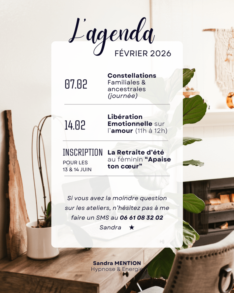 -La prochaine session de Libération Emotionnelle sur le thème de l’amour (de soi et des autres) le samedi 14 février à 11h.